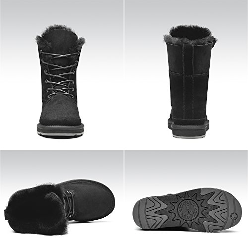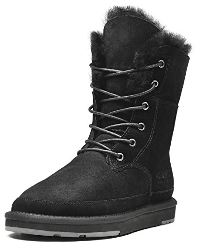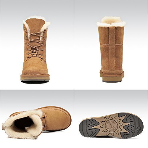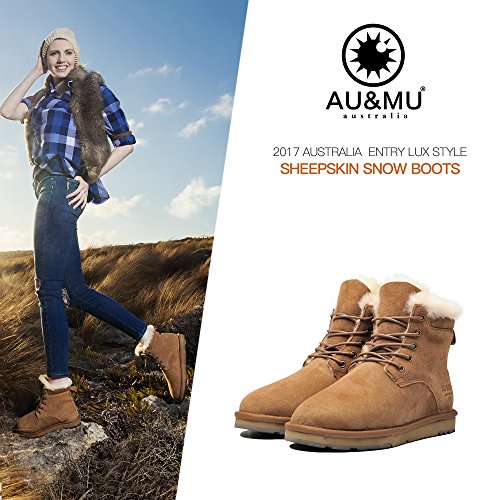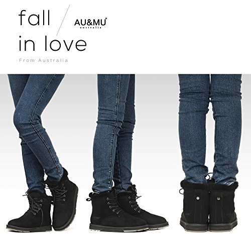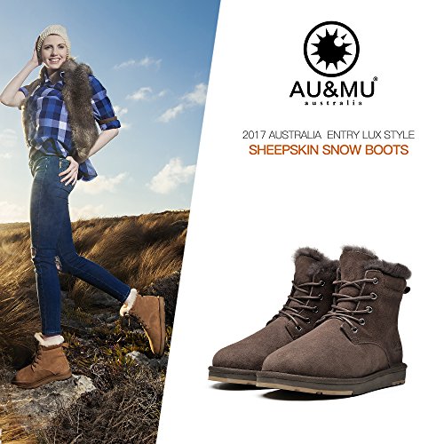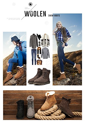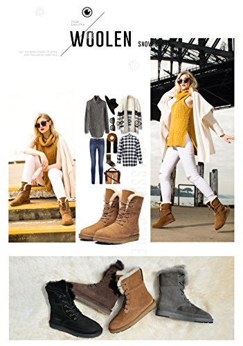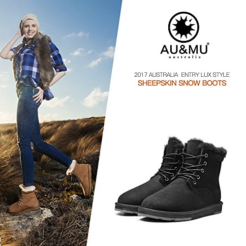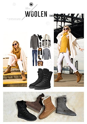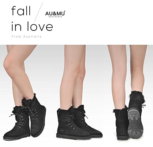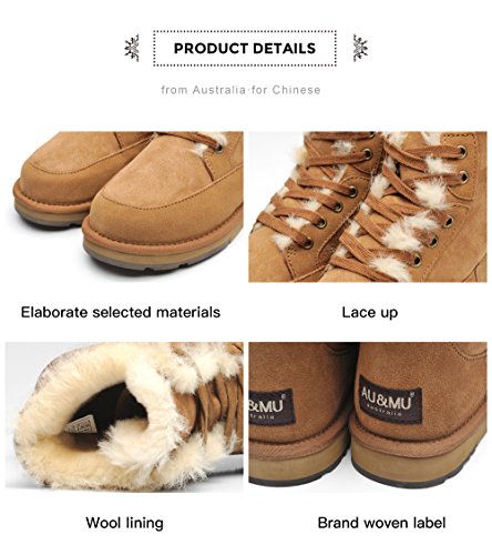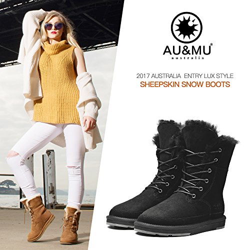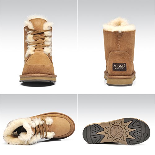 AUMU AUMU Womens Classic Lace Up Mid Calf Flat Fur Snow Boot Winter Boots