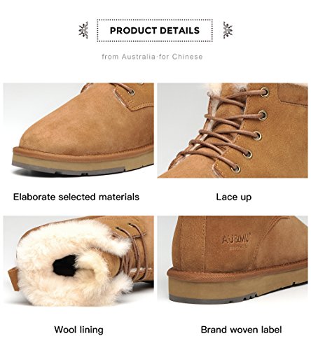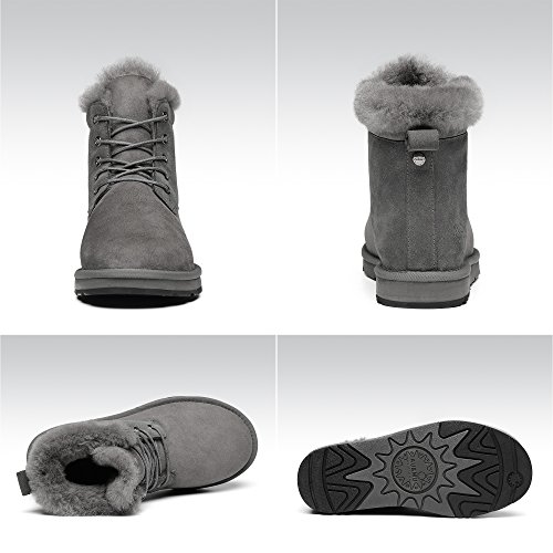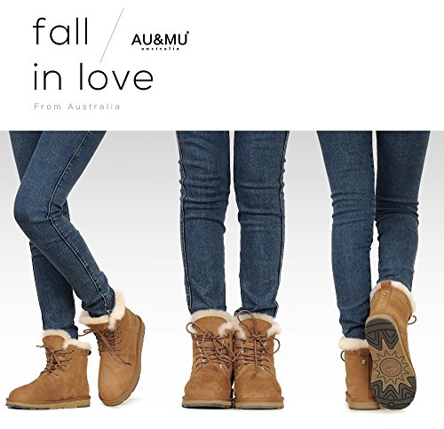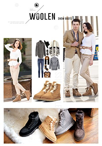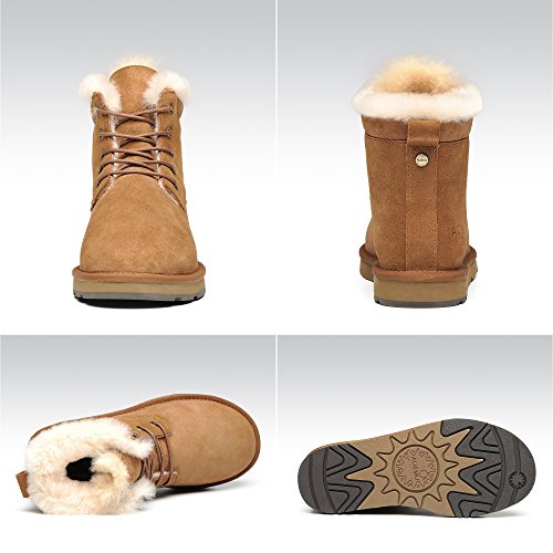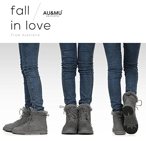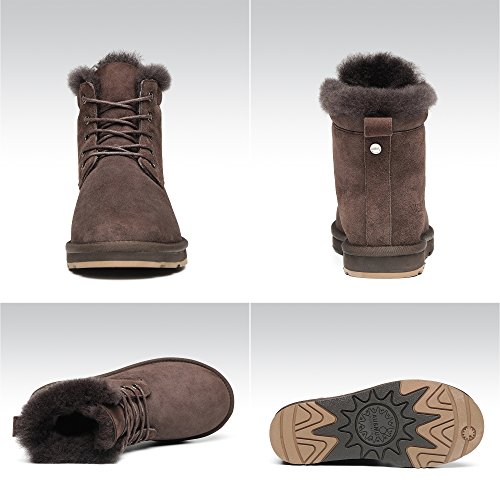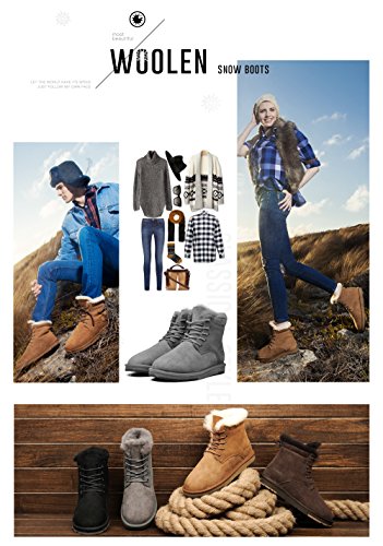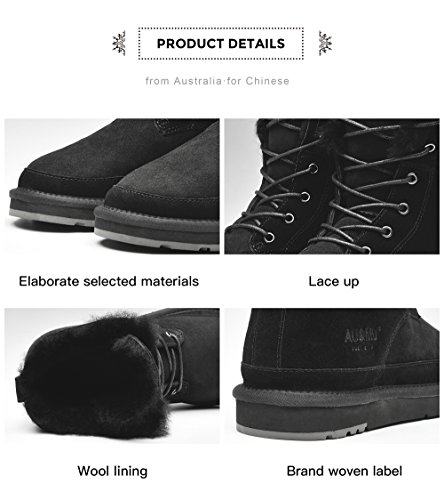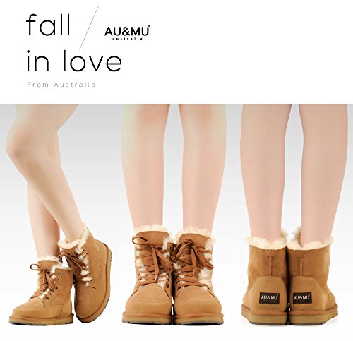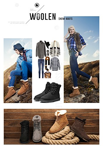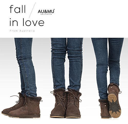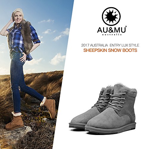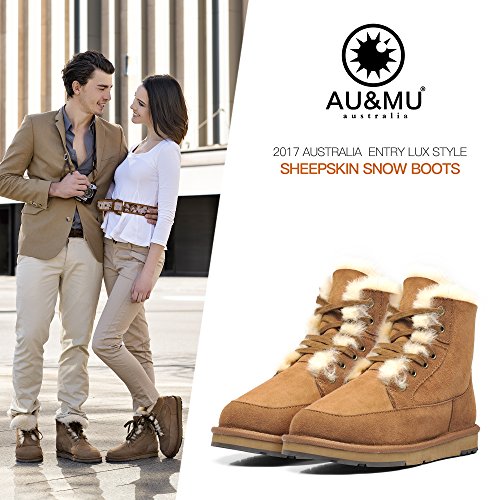 AUMU AUMU Womens Classic Lace Up Mid Calf Flat Fur Snow Boot Winter Boots