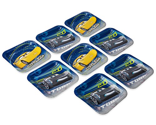 -. Binding : Toy -. Brand : American Greetings -. ClothingSize : One Size -. Color : White -. Department : boys -. EAN : 0013051726959 -. Feature : 8 small assorted party plates / Measures 7 in. x 7 in / Made in the USA / Disney's Cars 3 small square plates feature 2 character designs with either Cruz or Jackson Storm / Perfect American Greetings party supplies for favors and goody bag stuffers for a Cars 3-themed birthday party -. IsAdultProduct : 0 -. Label : American Greetings- Toys -. Manufacturer : American Greetings- Toys -. Model : 5832348 -. MPN : 5832348 -. NumberOfItems : 1 -. PackageQuantity : 1 -. PartNumber : 5832348 -. ProductGroup : Toy -. ProductTypeName : PARTY_SUPPLIES -. Publisher : American Greetings- Toys -. Size : One Size -. Studio : American Greetings- Toys -. Title : American Greetings Boys Cars 3 Dessert Square Plate(8 Count) -. UPC : 013051726959 -. Warranty : No Warranty