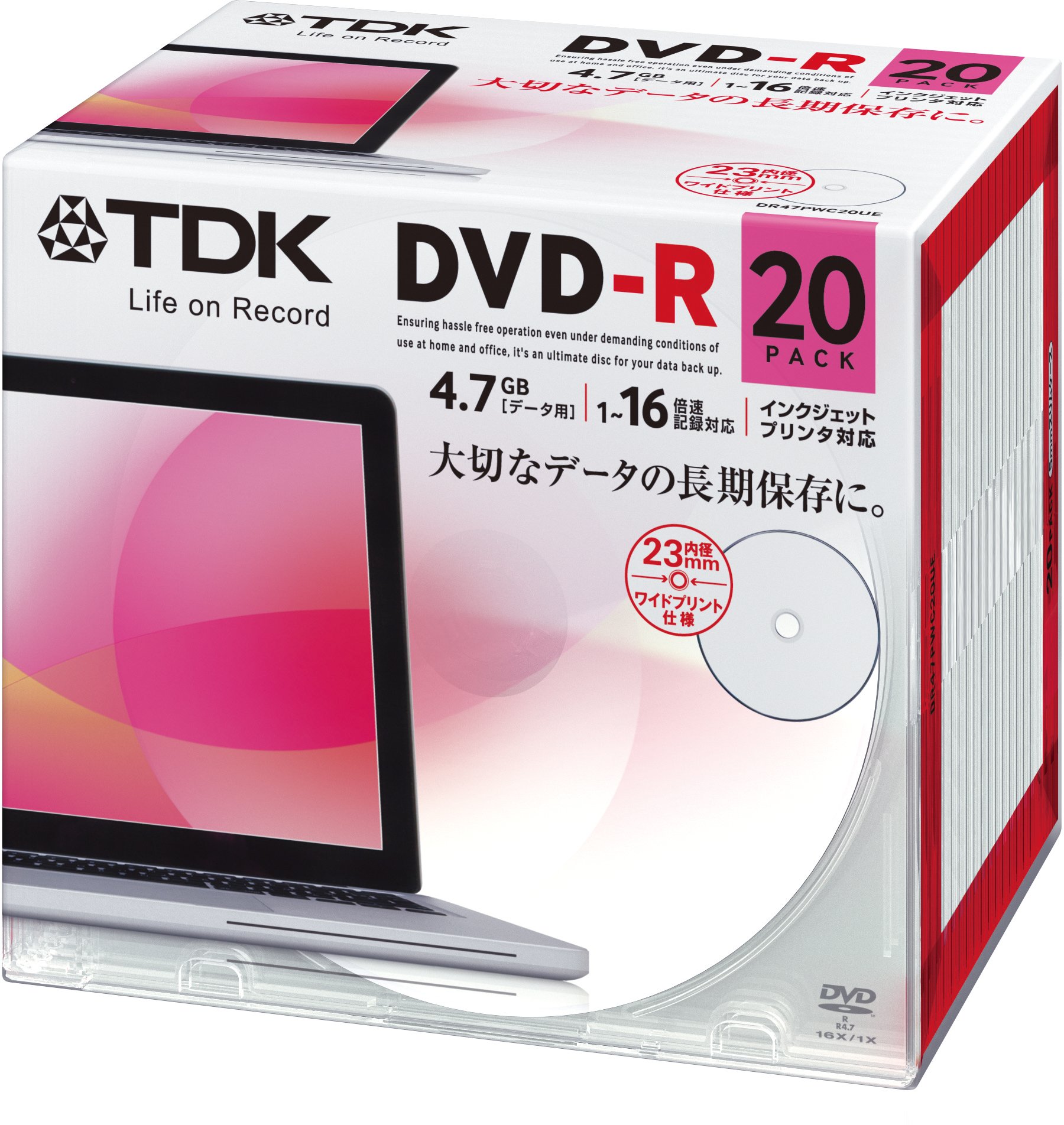 For TDK data DVD-R 4.7GB 1-16 speed correspondence white wide printable 20 pack of 5mm slim case DR47PWC20UE