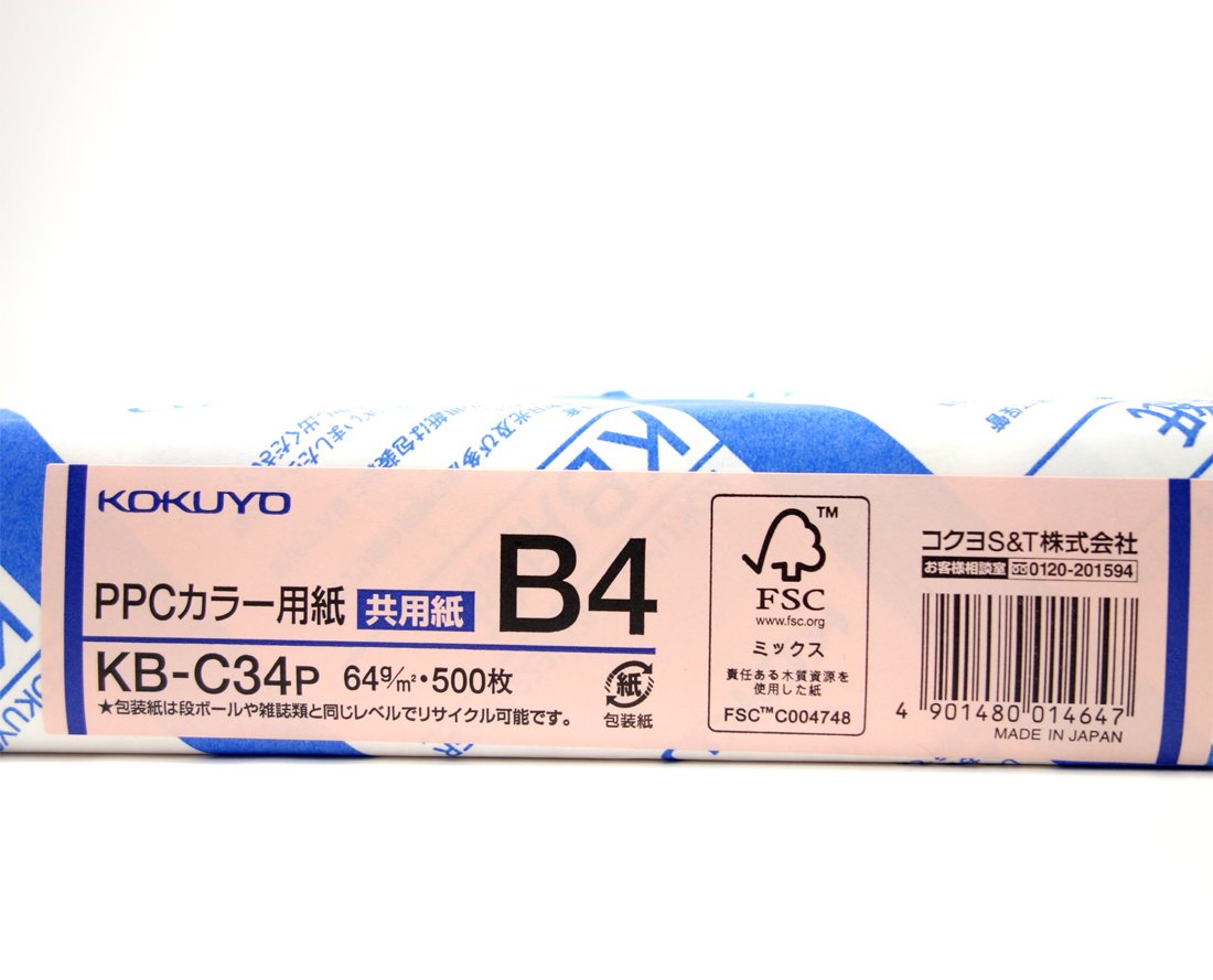Kokuyo PPC color paper both FSC-certified paper pink sheets B4 500 KB-C34P (japan import)