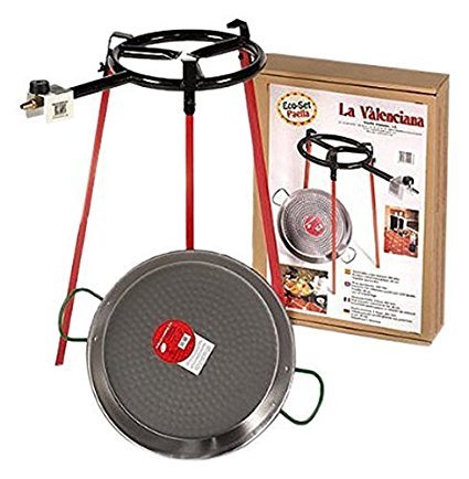 -. Title : Eco Set paella pan 46cm: set of 3 square support legs + 46cm polished steel paella pan + 400mm gas burner by Vaello Campos