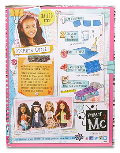 Includes a fun science activity: reveal the 3-piece blueprint instructions with water and assemble her skateboard with spinning wheels