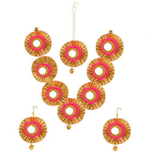 -. Title : ピンクポンポン付きand Golden Gotta and Ghungroos withミラーハンドメイドネックレスセット