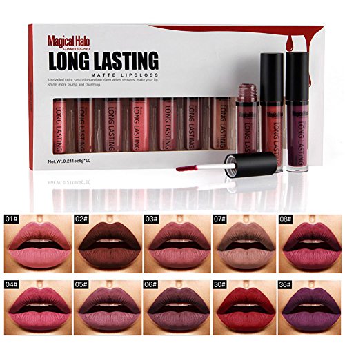 10 Colors Set Matte Liquid Lipstick Waterproof Nude Lip Gloss Lip Pen Makeup
