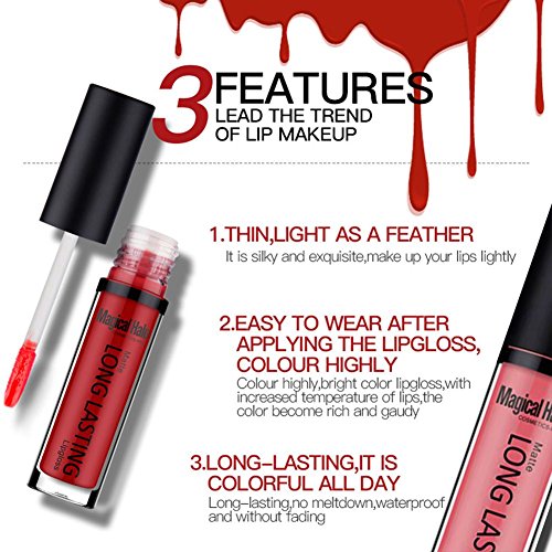 Don't compress lips after applied the gloss, or it will be sticky. Matte effect,long lasting and waterproof,easy to remove with lip cleansing oil.