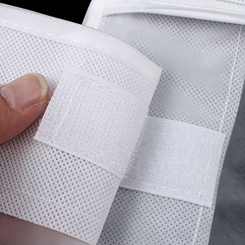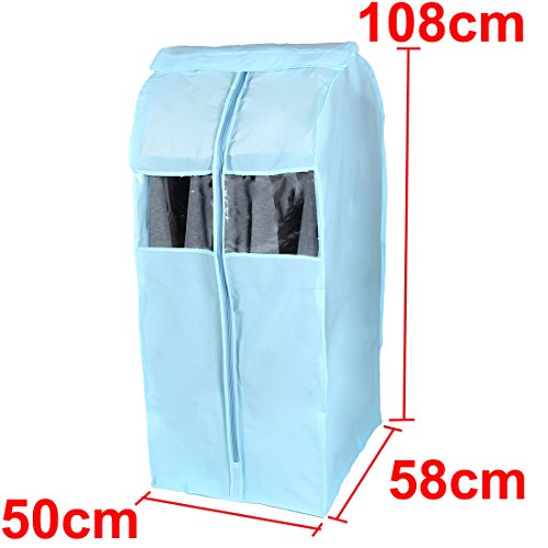-. Feature : Total Size: 108 x 50 x 58cm/42.5" x 19.7" x 22.8"(L*W*H); Material: PEVA / Light weight and durable garment bag: Light weight, washable, reusable, prevent all kinds of garment dusty, dirty and organize your closet nice and tidy / The garment bag is not a heavy lage bag but ideal tools to protect the garment against from dust, pet hairs, or for your other goals to protect the suit and also great tools to make your closet well organized. / Excellent economical clothes storage anywhere in the home, office, cloakroom. / Brilliant for market retailers and car boots to protect garments from the weather.