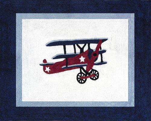 Add the finishing touch to your room with the Aviator Vintage Airplanes Floor rug by Sweet Jojo Designs. This hand tufted, 100% cotton yarn accent rug is made to coordinate with this Sweet Jojo Designs Bedding Collection. This rug with non skid backing will be a great addition to any bedroom or bathroom in your home.Feature