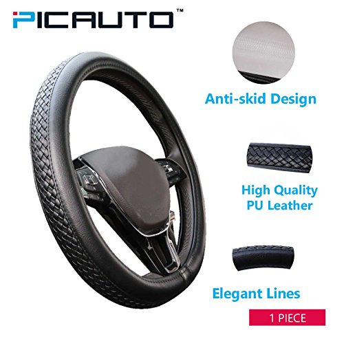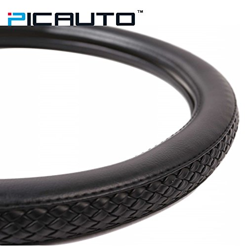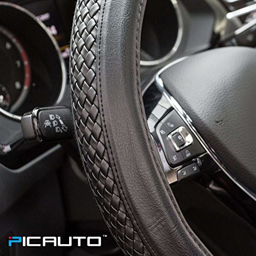 PIC AUTO Steering Wheel Covers Universal 15 inch - Braided Design, PU Leather, Anti Slip & Odor Free ,Soft Padding, Durable, (BLACK)
