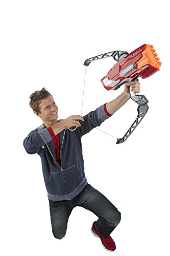 With the Nerf N-Strike Elite ThunderBow blaster, you can unleash five darts in a row without reloading. Load 5 big red Mega darts into the barrel of this Nerf bow blaster, then repeatedly pull and release the string to fire all five darts in succession. Listen as the Mega darts whistle through the air when fired. This Mega series bow from Nerf fires the darts a Mega distance of up to 100 feet, for bigger Nerf battles!