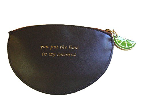 - Feature : coin holder with lime zip top closure / calf hair with smooth cowhide trim / print reads "you put the lime in my coconut" / 3.5" h x 6"w