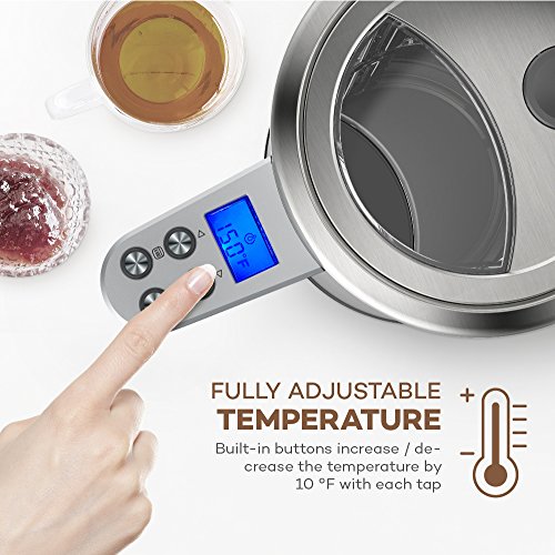 Convenient LCD Display In addition to allowing the users to set exactly the desired temperature via two built-in control buttons that increase / decrease it by 5 °C / 9 °F with each tap, the VAVA Digital Electric Kettle features a conveniently positioned LCD display that provides a foolproof reading of the preset water temperature.