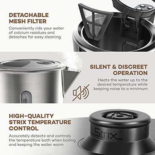 Safe Heat Resistant Handle Keeping the users in mind, VAVA has equipped the kettle with a heat-resistant handle that stays cool in order to prevent accidental burns and scalds. Britain-based, market-leader Strix is behind the built-in control that accurately monitors the water temperature.