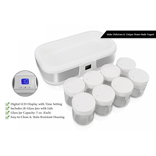 The NutriChef Yogurt Maker is your hassle-free yogurt solution! Make delicious home-made yogurt using your very own ingredients in the comfort of your own home. It's quick, convenient and fun! The simple countertop design is easy to use and will have you creating your very own yogurt in no time. The system includes glass jars for food prep so you can create healthy yogurts with fresh and organic ingredients! Create the perfect snack, that's fun for all ages, with NutriChef.Feature