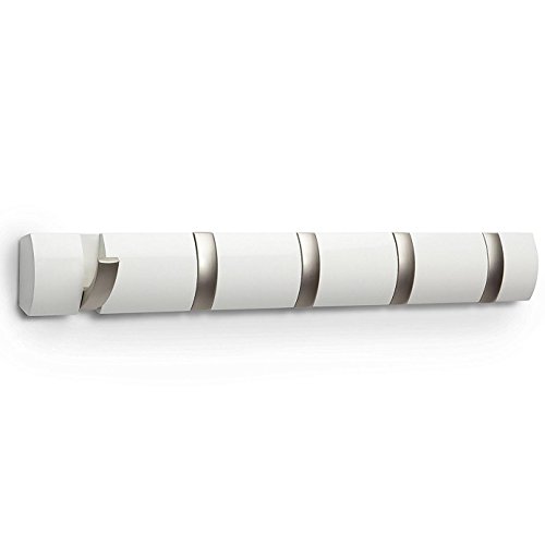 Umbra Flip(R) 5-Hook Wall-Mount Rack/Rail, White/Nickel