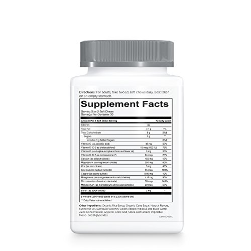 Product DescriptionSmartyPants Adult Mineral Complete Chews: Multimineral, Magnesium Citrate, Calcium Citrate, Vitamin C, D, E, K; 60 Count, 30 Day Supply0
