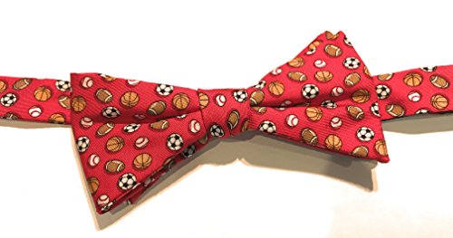 Product DescriptionBow Tie Has Basketball , Soccer Ball Baseball, and Footballs on it Background Color is Red 100% silk0
