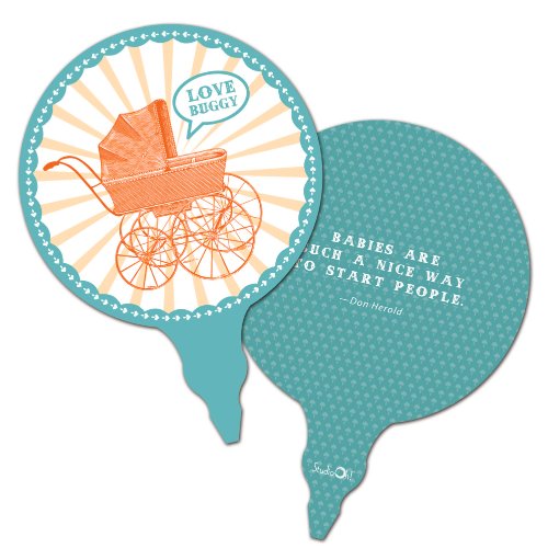 - Package of 3 studio oh love buggy treat toppers; toppers measure approximately 6-1/2 x 9-1/2 -inch