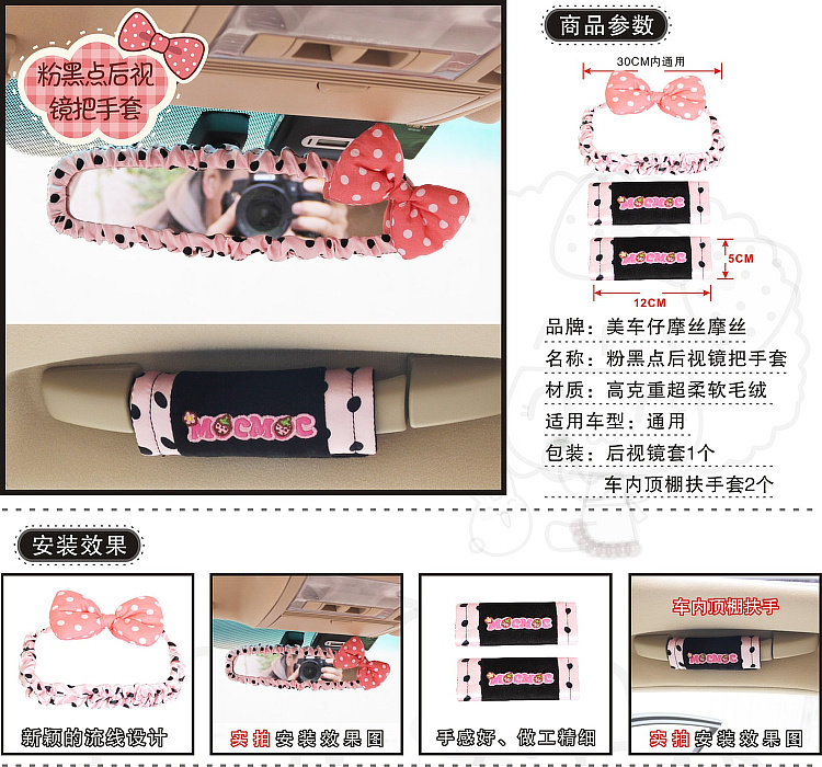 Rearview mirror set directly inside the car rearview mirror, put the gloveson the handle after the package, fixed with Velcro to the above, MOCMOC fans love!