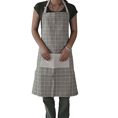ICEBLUE Cotton Linen Canvas Apron with Convenient Pocket Durable Stripe Kitchen and Cooking Apron for Chef Apron for Cooking Grill and Baking (Grey)