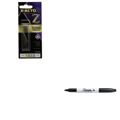 Studio : X-acto Publisher : X-acto Binding : Office Product Product Description lt;stronggt;EPIXZ211lt;/stronggt;lt;BR/gt;X-acto Z Series 11 Replacement Bladeslt;BR/gt;For delicate, precision cutting, trimming and stripping. Easily cuts paper, plastic, balsa, thin metal, cloth, film and acetate. Use with type A handle. Blade Type: Replaceable Materials: Stainless Steel.lt;BR/gt;lt;BR/gt;lt;stronggt;SAN30001lt;/stronggt;lt;BR/gt;X-acto Z Series 11 Replacement Bladeslt;BR/gt;This fine tip permanent marker is the original Sharpie. Permanent on most hard-to-mark surfaces. Quick-drying ink is waterproof, smearproof and fade-resistant. Marker Type: Permanent Assortment: N/A Colors: Black Tip Type: Fine. 0