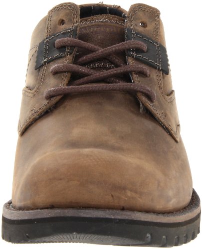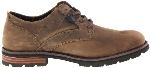 Amazon.com Refresh your casual look with this rugged oxford from Caterpillar. The Mather features a burnished leather upper with a lace-up front for a perfect fit. Beneath, a lugged rubber sole delivers a grippy step on or off the street. 0