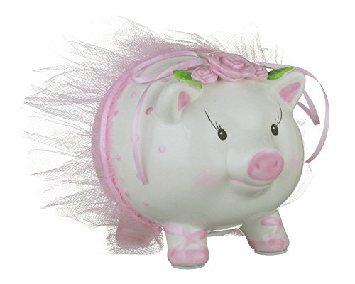 Mud Pie - Ballerina Kids Piggy - Money Bank - Hand-painted Ceramic – 5.5” x 6”