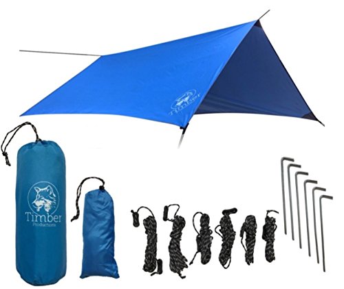 ✔️ALL INCLUDED: This Rain Fly package comes with everything you'll need to set up and get going. Package includes:1 Timber productions Rain fly 1 Storage sack 6 high strength ropes along with 6 rope tensioners and 6 metal stakes
