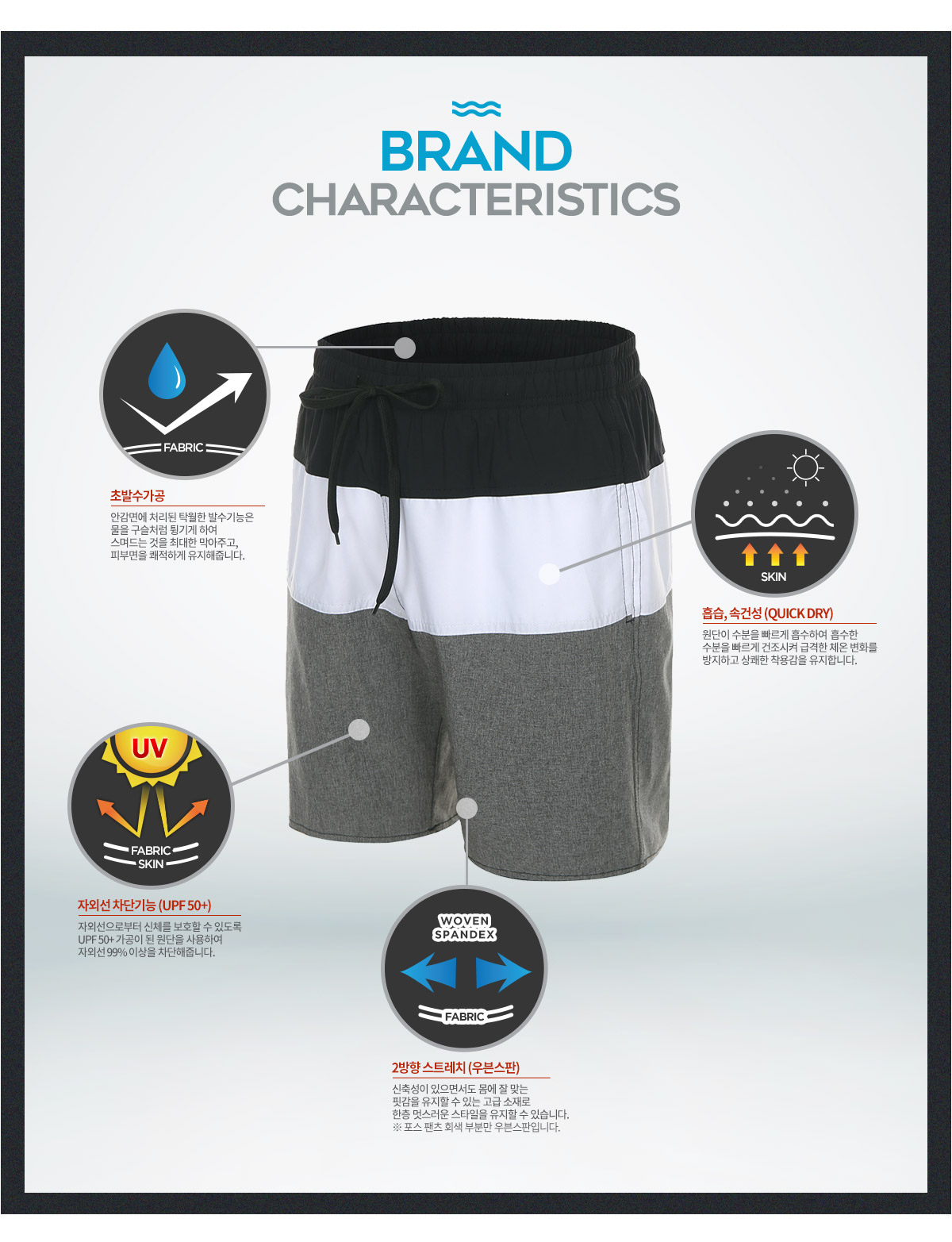 부드럽고, 건조가 빠른 원단으로 물놀이에 적합합니다.