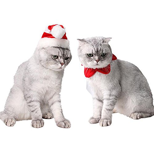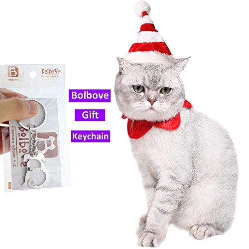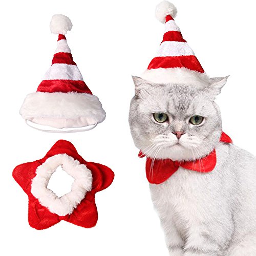 -. Title : Bolbove Pet Christmas Set Stripe Hat and Star Neck Wear for Cats Puppies Party Holiday
