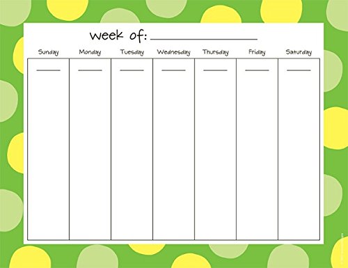 -. Feature : Weekly schedule pad / Yellow and green dot / Includes 50 sheets / Made by Donovan designs
