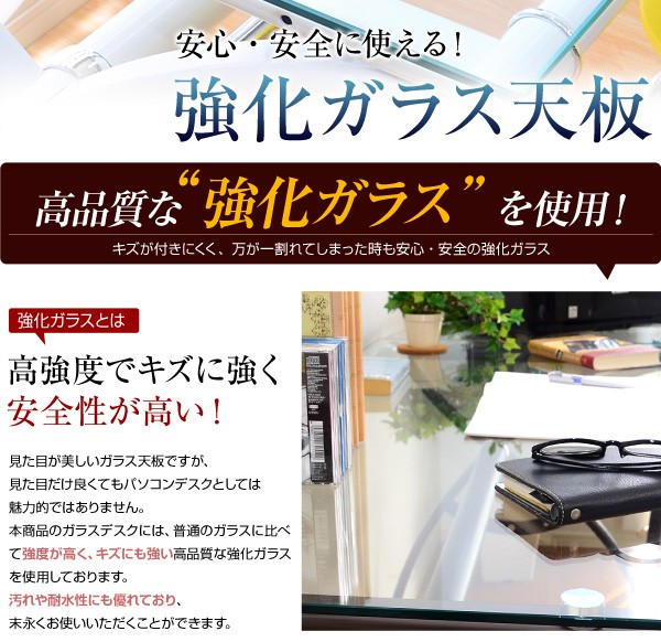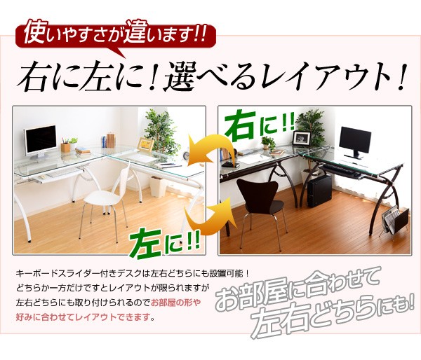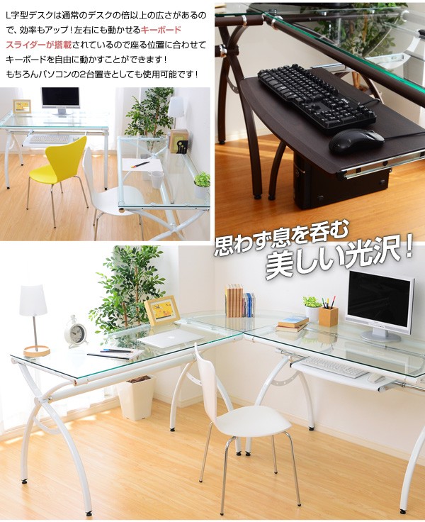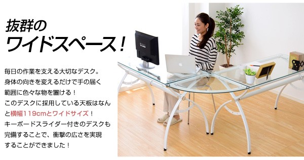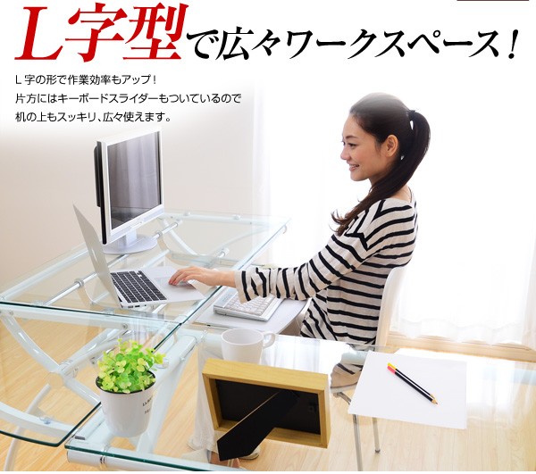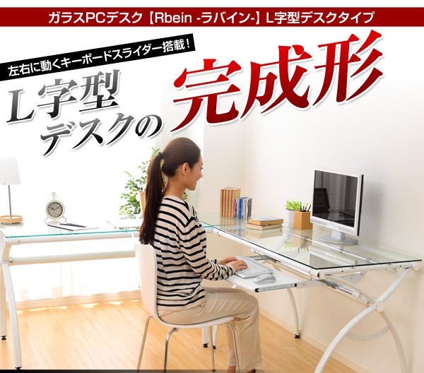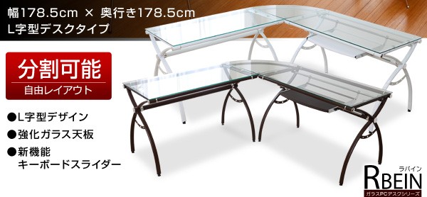 ガラスPCデスクシリーズ【RBEIN-ラバイン】L字型タイプ