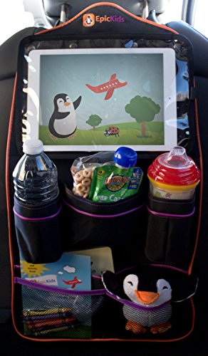Backseat Car Organizer Deluxe - iPad/Tablet Holder - 7 Storage pockets - Extra Deep bottle pockets - HIGH QUALITY - FREE Coloring Book by EpicKids included.