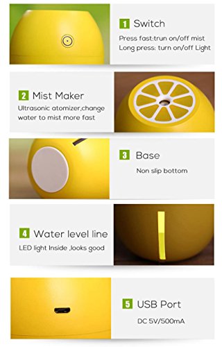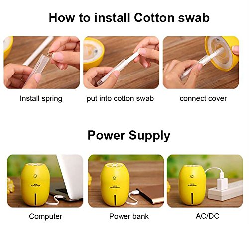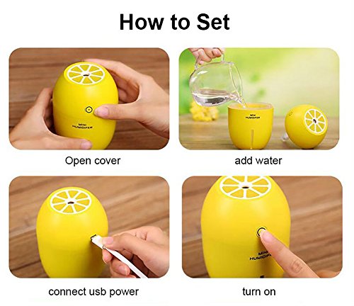 - Mini cute lemon shape humidifier, just look like a lemon, but no any smell. Please add just water and don't add Essential oil or any others, the oil may causr a block