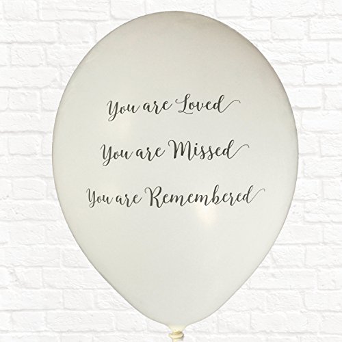 25 White 'You are Loved, Missed, Remembered' Biodegradable Funeral Remembrance Balloons - by Angel & Dove