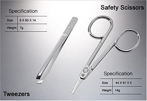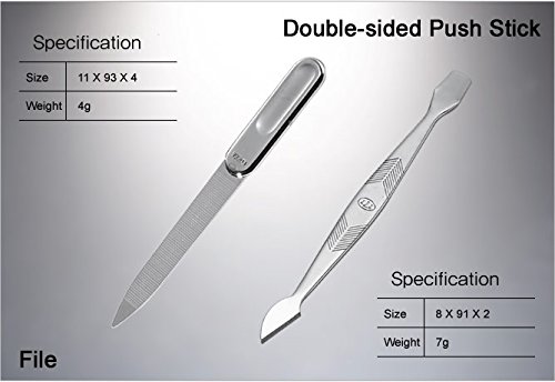 - Included (Total 8 Pcs: Nail Clipper, Cuticle Trimmer, Beauty Scissors, V-shaped Push Stick, Double-sided Push Stick, Tweezers, Ear Pick, Nail File: TS-377BVC)