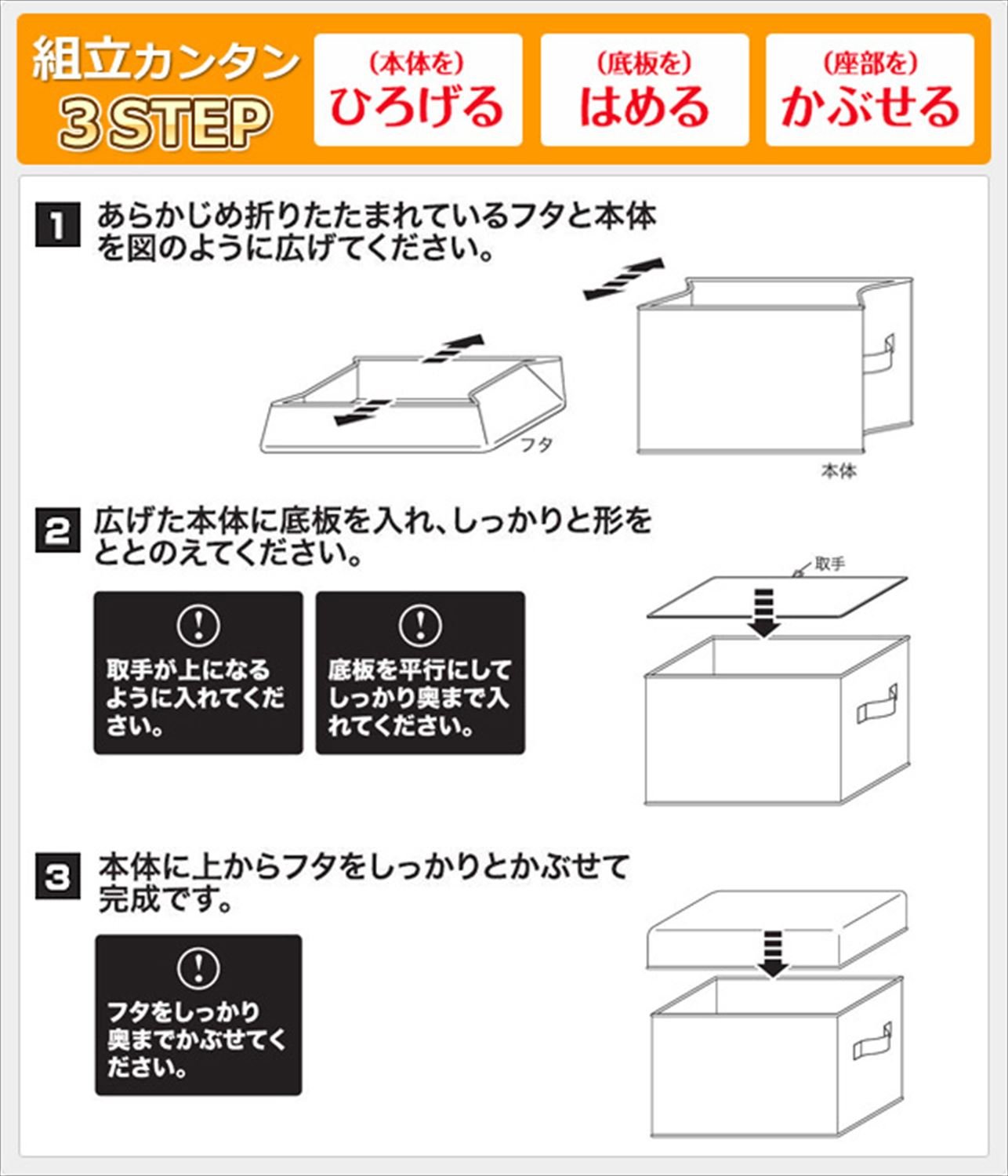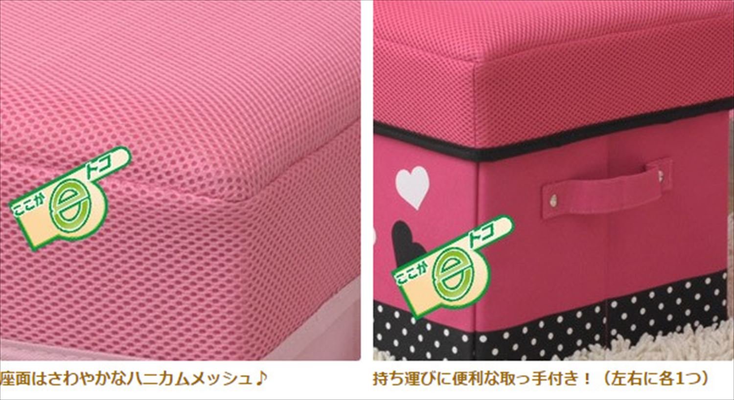 When not in use fold up and compactly ● Easy assembly 3 steps ● With handy handy handle ● Adopted mesh cloth for the seat part ● Internal part dimensions of the storage part: width 26 depth 26 depth 25 cm ● Estimated load: approx.