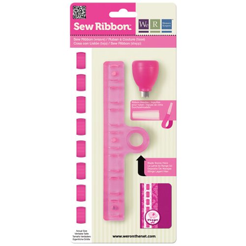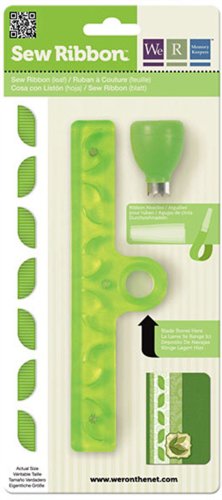 We R Memory Keepers Sew Ribbon takes the concept of stitching thread to now threading ribbon. Like the Original Sew Easy which allows users to create stitched patterns on all types of projects, crafters can now make beautiful designs with their ribbon. Crafters have been using ribbon for years to embellish their projects and now they can easily apply the ribbon to the project and make 6 interesting designs. This new product also has 10 ribbon packs available in various colors and textures, a Storage Case and extra "needles.". Look for all our High Quality We R Memory Keepers and We R at Home products and toolsFeature