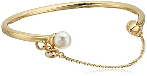 -. Feature : Gold-plated cuff bracelet featuring round faux pearl at one end with spike at opposite / Chain with sP.R.Ing-ring clasp closure / Imported