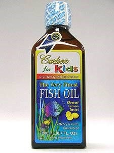 Carlson for Kids Very Finest Fish Oil has a great lemon taste and contains 800 mg of omega-3's in each ½ teaspoonful. Carlson for Kids Very Finest Fish Oil comes from cold-water fish found in deep Norwegian waters, and is bottled in Norway to ensure maximum freshness. It is vitamin A & D free. Recent medical studies have shown the importance of omega-3's for healthy brain development and vision in growing children. This product is regularly tested (using AOAC international protocols) for freshness, potency and purity by an independent, FDA-registered laboratory and has been determined to be fresh, fully potent and free of detectable levels of mercury, cadmium, lead, PCB's and 28 other contaminants. Fish provides the important polyunsaturated omega 3's, EPA and DHA, which aid our well being by promoting cardiovascular health. For those individuals who do not eat an oily fish diet, Carlson offers a variety of Fish oil products in Liquids that are very tasty. All fish oil products are regularly tested using AOAC international protocols for potency and purity by and independent FDA Registered laboratory.