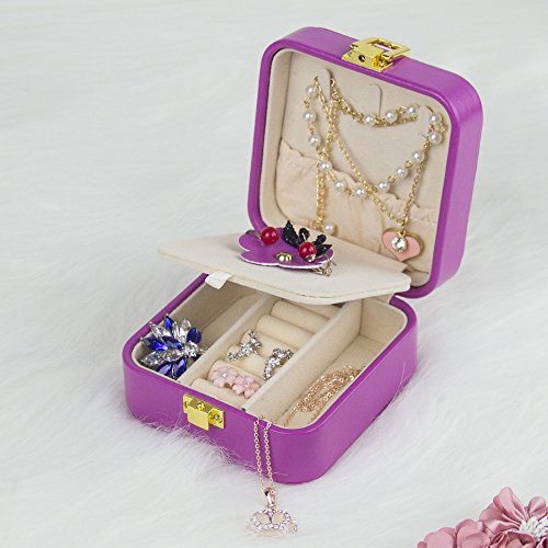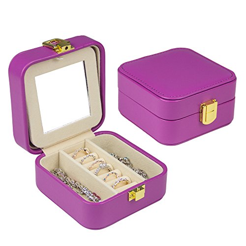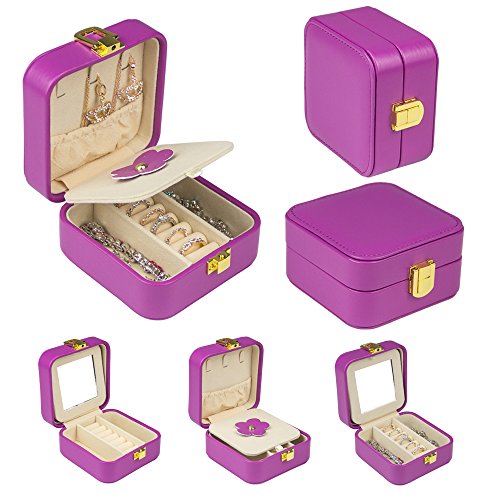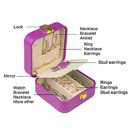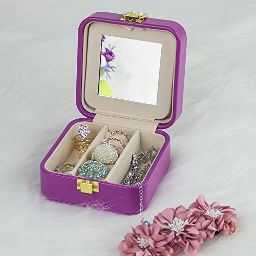 - ★Material and Size--Made of Purple faux leather, medium density fiberboard,Beige environmental protection Pearl cashmere liner,Easy to clean and maintain. This travel jewelry box is Mini size:4*4*2.2 inches/102*102*55mm. light weight: 191g /6.7 ounceWe are jewelry case being entirely hand made, are more expensive to produce
