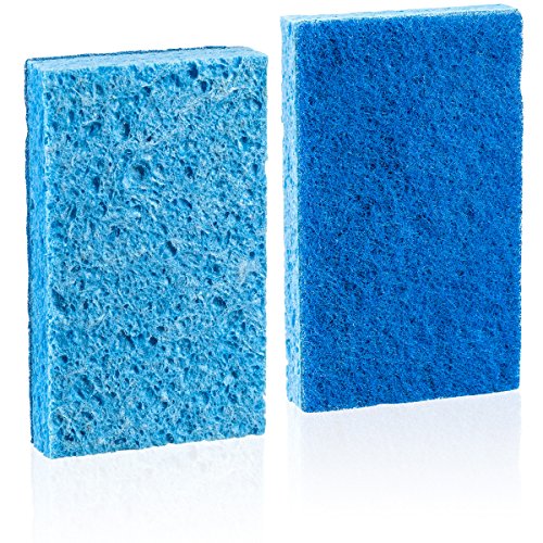 - Powerful scrubbing surface tackles tough messes and will not scratch Built with durable material and lasts 20% longer than regular scrubbing sponges