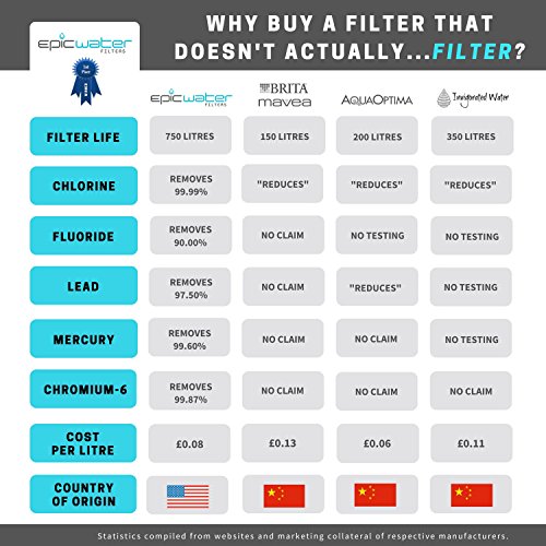 - ★ RIGOROUS TESTING: Filters tested extensively in USA including Los Angeles County, as well as heavily contaminated homes in Flint, Michigan. Independent lab results show our filters to have removed lead, copper, and many other metals and toxins to undetectable levels in Flint. (Now that's Epic). Testing also conducted by independent labs in 16 countries inc: UK, Japan, Australia, Brazil, New Zealand. Filters are EPA/ANSI certified and far exceed NSF Standards 42 & 53 for contaminant reduction.
