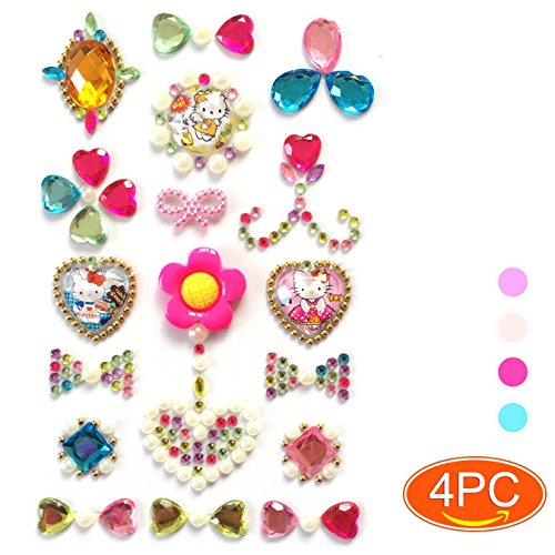 Elesa Miracle Girl Party Favor Pretend Play Princess Jewelry 4 Cards Bling Sticker Jewels, Adhesive Jewels, Crystal, Flower Wall Decoration