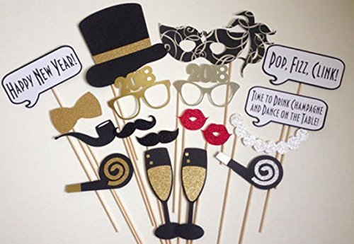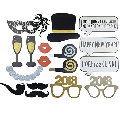 Losuya 2018 New Year Party Photo Booth Props 18pcs Photobooth Prop Masks Mustache Hat Red Lips Glasses for New Year Party Decoration