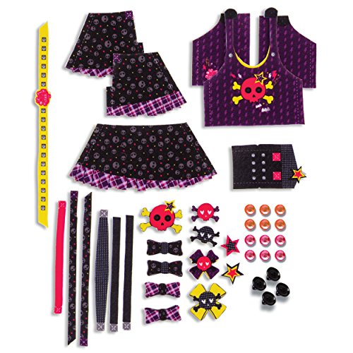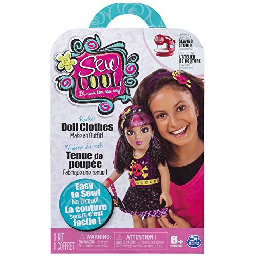 Design! Stitch! Decorate! Create a set of Sew Cool Rocker Doll Clothes including a skirt, tank top, purse and headband, using this colorful creative fabric kit and your Sew Cool Sewing Studio. The Sew Cool Studio is simple to use, with no bobbins to wind, no needles to thread and no foot pedal. It’s never been sew easy as with Sew Cool and its special fabric. Unlike ordinary Sewing Machines, the Sew Cool Sewing Studio is designed specifically for ages 6+. First time sewers will enjoy almost instant gratification because they can do it themselves. Making the Rocker Doll clothes will encourage your child’s imagination and develop hand eye coordination. With the Sew Cool Rocker Doll Clothes creative fabric kit, kids can easily craft and customize a stylish and cool fashion set for most 18” dolls: a punky skull tank top, alien print skirt and printed headband. Personalize the creations with 12 gems, 4 buttons, punky skull badges, patterned bows and by mixing and matching fabric designs. The Sew Cool sewing studio’s unique threadless technology is the safe and simple way for young kids to learn new creative skills. The Rocker Doll Clothes kit will have kids making their own personalized punky skull tank top, alien print skirt and printed headband for their dolls in no time! Design, stich and decorate with Sew Cool! Sew Cool Sewing Studio sold separately.Feature
