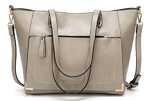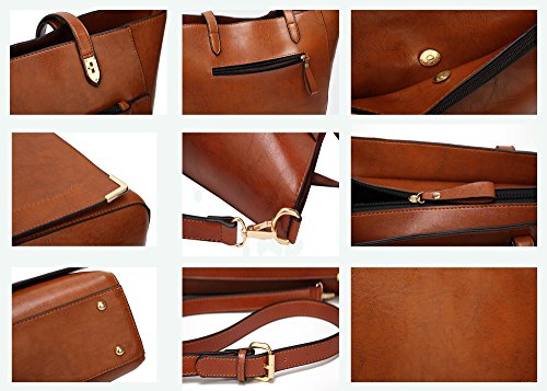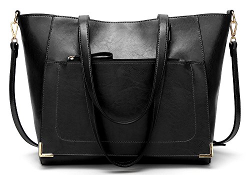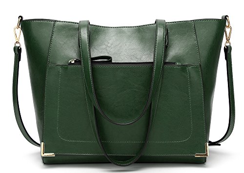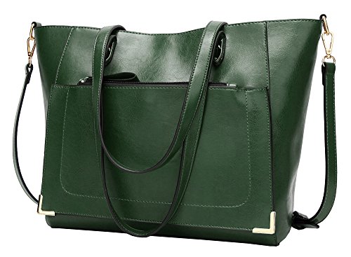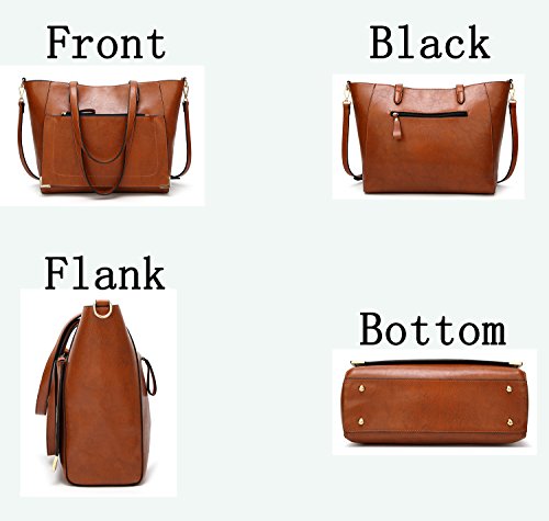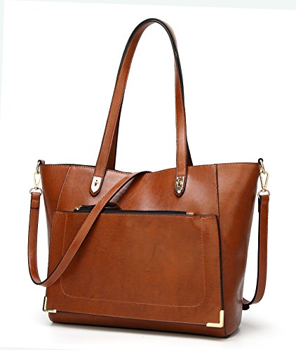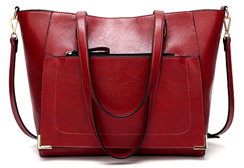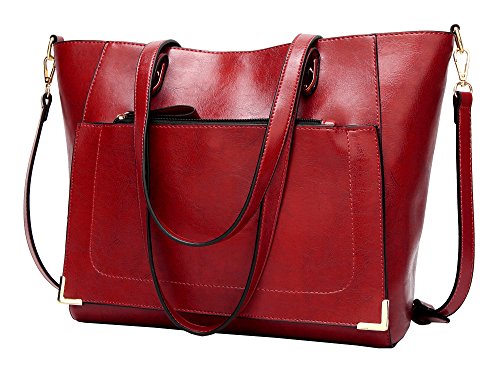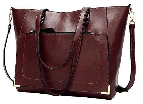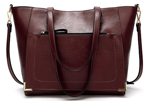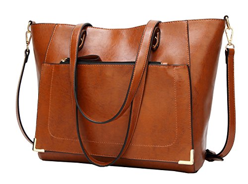 Product Description Item Type: Obosoyo Tote Shoulder Bag/Work Travel School Bag Style: Modern Fashion Pattern: Solid Color Outer Material:Top Layer Leather with Waxing and Oiling Finish Inner Material: Nylon Fabric Closure: Top Zipper Closure Features: Metal Reinforce Leather Strap/Adjustable Shoulder Strap Inner Pockets: 1 middle zipper pocket/1 side zipper pocket/2 compartments open pockets, 2 small pouch pockets Size: Approx.33x10x30cm/13.0x3.9x11.8inches(L*W*H), handle strap length: 28cm/11.0" Occasion: shopping/dating/working/traveling,Versatile ------------------NOTE--------------------- Size may be 2 cm/1 Inch in accuracy due to hand measure May it will have little leather smell, just put it in well-ventilated areas for few days and the smell will disappear 0