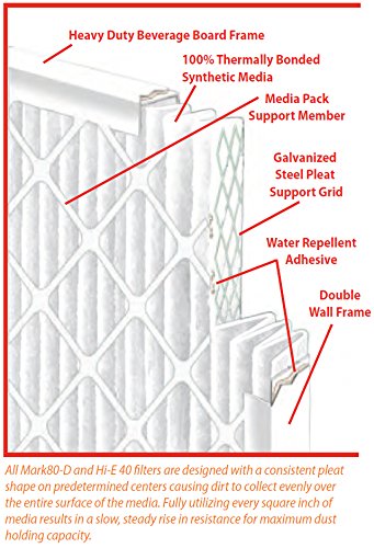 Sterling Seal FI-2301-SP1x2 Purolator Hi-E 40 Extended Surface Pleated Air Filter, Mechanical MERV 8, 24" Width x 30" Height x 1" Diameter (Pack of 2)