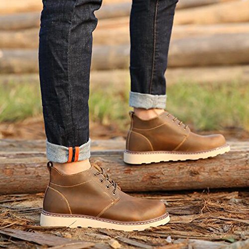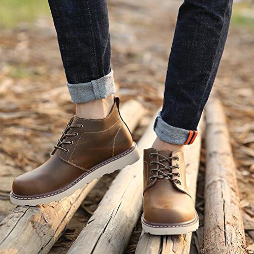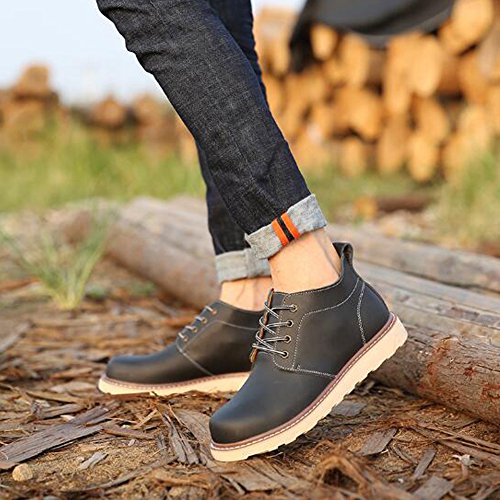 Binding : Apparel Product Description PP FASHION BRAND STORE This construction boots from PP FASHION which uses genuine Oxford and PU leather. Strongest and wearable oxford sole, softable insole, increasing platfrom and fleece inner lining can keep you comfort and warm in all day. Size Chart: Size 7.5 D(M) US = EU39 D(M) = Foot Length 24.5 - 25cm Size 8 D(M) US = EU40 D(M) = Foot Length 25 - 25.5cm Size 8.5 D(M) US = EU41 D(M) = Foot Length 25.5 - 26cm Size 9 D(M) US = EU42 D(M) = Foot Length 26 - 26.5cm Size 9.5 D(M) US = EU43 D(M) = Foot Length 26.5 - 27cm Size 10 D(M) US = EU44 D(M) = Foot Length 27 - 27.5cm Please note that the fit and color may vary slightly according to the personal references and monitor settings. 0