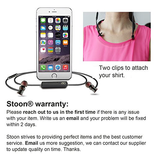 -. Binding : Wireless Phone Accessory -. Brand : Stoon -. Feature : 1. BLUETOOTH V4.1 + EDR APT-X: offering you perfect stereo sound. Playing music time: up to 3.5 hours. Talk time: 5 hours; Charging time: 2 hours. / 2. TWO BLUETOOTH CONNECTION: connect with 2 cell phones or tablets at the same time.You will not miss any important calls.Phone above the status bar displays the electricity consumption of Bluetooth for iPhone users. / 3.MAGNET ATTRACTION DESIGN and SWEAT/WATER PROOF: hang like a necklace around your neck, and a 10-meter working distance, our sport headphones will let you enjoy music when running, gym, sports & exercise and other activities. / 4. SWEAT-PROOF DESIGN: You can enjoy music while runing, jogging or doing other exercise. / 5. WHAT-YOU-GET: Stoon® Sport Bluetooth Headset, 45 days money-back & 18-month worry-free warranty, and friendly customer service. -. Label : Stoon -. Manufacturer : Stoon -. Model : BTH-816 neckband bluetooth headphones -. PackageQuantity : 1 -. ProductGroup : Wireless -. ProductTypeName : WIRELESS_ACCESSORY -. Publisher : Stoon -. Studio : Stoon -. Title : Bluetooth Headset, Wireless Neckband Bluetooth Earbuds , Hands-Free Noise Cancelling Headphones Earphones with Microphone & Stereo for Sport Running with Magnetic Attraction